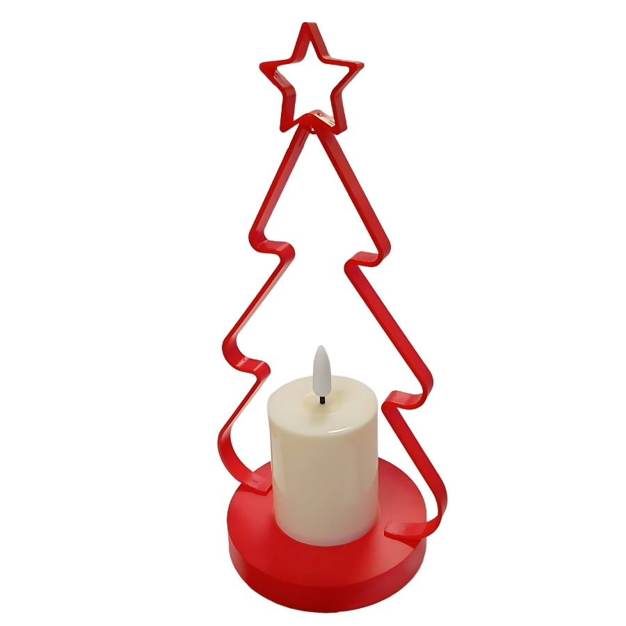 O Enfeite Moldura Árvore De Natal com Vela - Vermelha - 11x22x9,5cm é o toque especial que faltava para transformar sua decoração natalina em algo ainda mais mágico e encantador. Com um design cuidadosamente elaborado, ele une a simbologia da árvore de Natal ao brilho aconchegante da vela, criando uma atmosfera calorosa e cheia de significado para o ambiente.