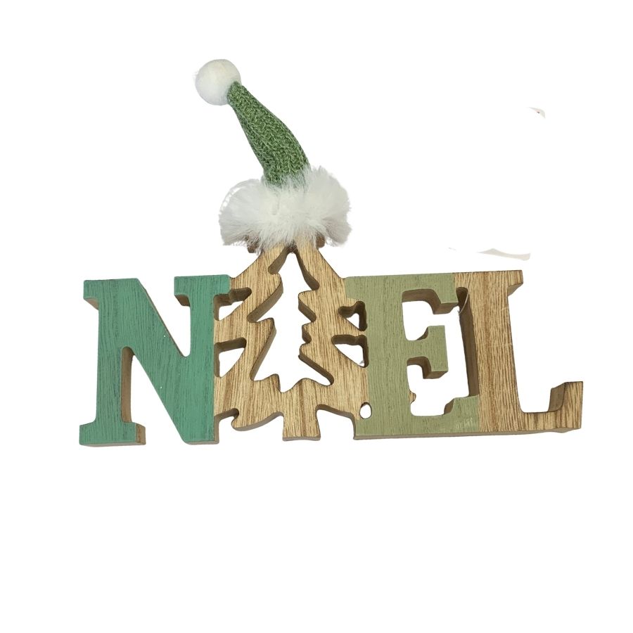 Enfeite natalino em MDF com figura de Noel com gorro verde, 16cm de altura. Perfeito para decorações criativas e sustentáveis.