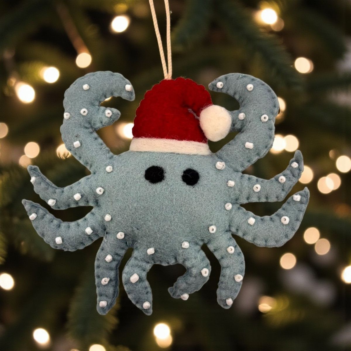Pendure o enfeite em árvores de Natal, guirlandas ou cordões decorativos. Combine com outros ornamentos temáticos ou coloridos para criar uma decoração descontraída e divertida. Limpe apenas com pano seco e guarde em local protegido após o uso para preservar o brilho das miçangas e o acabamento da peça.