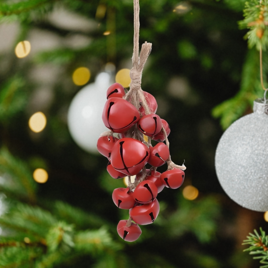 Enfeite natalino para pendurar em formato de guizo na cor vermelha, medindo 13,5x10x4cm. Indicado para árvores, guirlandas e ambientes festivos, trazendo movimento e charme à decoração.