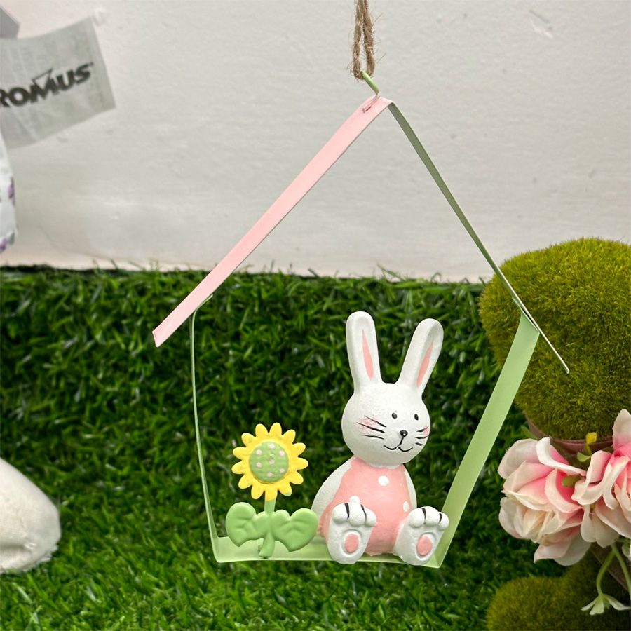Com dimensões de 12,5x10,5x2cm, esses enfeites são ideais para serem pendurados em diferentes locais, como galhos, ganchos ou maçanetas, graças ao cordão de cetim no topo. A combinação da cor rosa vibrante da casinha, a presença encantadora do coelho e o toque suave do cordão de cetim fazem desses enfeites uma escolha encantadora para criar uma atmosfera alegre e festiva durante a Páscoa.