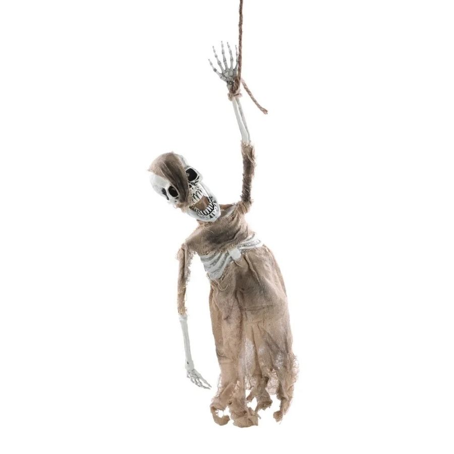 Pendure em portas, janelas, cantos ou árvores para surpreender com seu visual arrepiante e sons assustadores. Pode ser combinado com teias falsas, luzes ou outros elementos para criar uma ambientação completa.