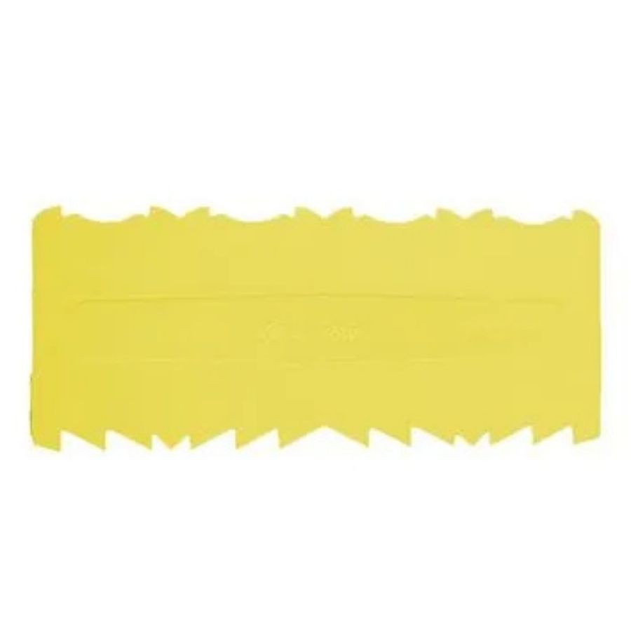 A Espátula Decorativa Amarela Nº25 é uma ferramenta indispensável para quem deseja dar acabamento profissional aos bolos. Produzida em plástico resistente e com um design funcional, ela possui dois lados com padrões diferentes, ideais para criar texturas e efeitos decorativos variados nas laterais do bolo. Seu formato anatômico garante firmeza no manuseio, facilitando o uso mesmo por iniciantes na confeitaria.