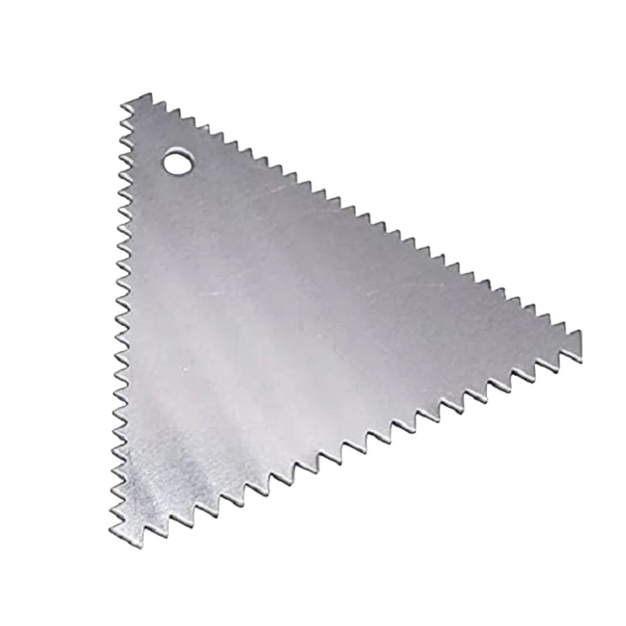 A Espátula Decorativa de Alumínio Triangular - CB05-02 é o acessório ideal para confeiteiros que buscam praticidade e perfeição nos acabamentos. Produzida em alumínio de alta qualidade, ela possui o formato triangular e cada um dos seus três lados conta com um padrão diferente inspirado em "espinhos", permitindo criar efeitos variados nas laterais e bordas dos bolos. Resistente e durável, é perfeita tanto para uso profissional quanto para quem gosta de confeitar em casa.