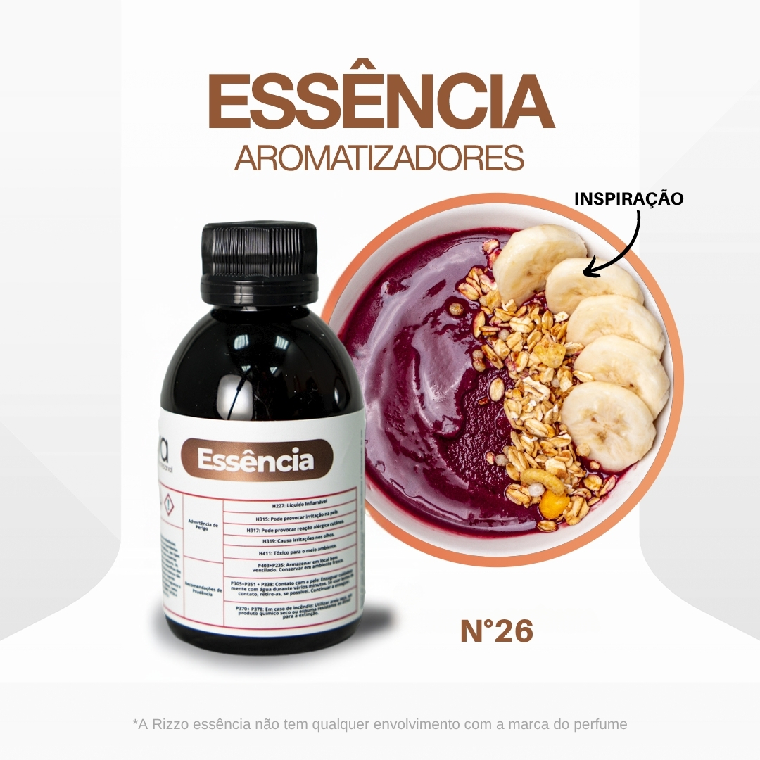 A Essência Banana E Açai Concentrada N°26 - 100g é perfeita para quem deseja agregar uma fragrância tropical e envolvente a velas, aromatizadores e cosméticos. Sua concentração permite um excelente rendimento, sendo ideal para produtores artesanais e comerciais. Combinando os sabores doces e frutados da banana com a energia do açaí, ela é uma escolha versátil que se adapta facilmente aos mais diversos produtos, proporcionando um toque de frescor e sofisticação.
