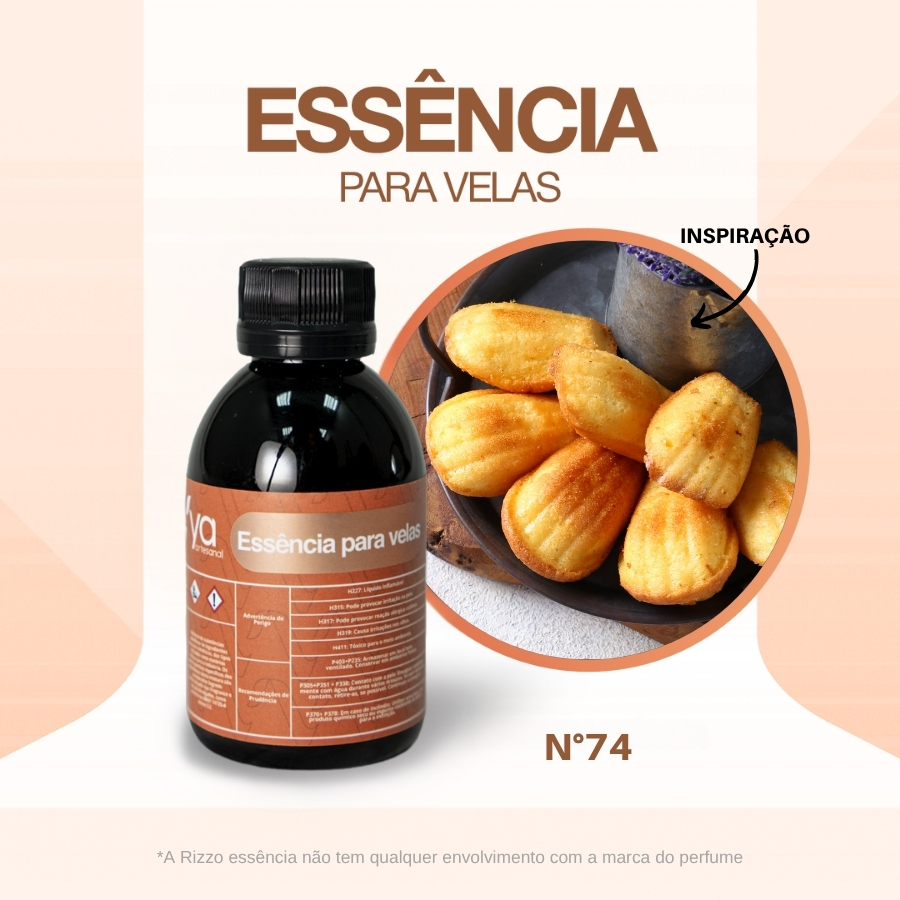 A Essência Vela Madeleine N°74 é indicada para quem fabrica velas perfumadas com foco em fragrâncias doces e sofisticadas. Com 100g, pertence à família olfativa Oriental Gourmand e possui alta fixação, ideal para valorizar a fragrância final do produto. Pode ser usada em diversas bases, sendo uma excelente opção para personalizar velas de forma profissional e atrativa.