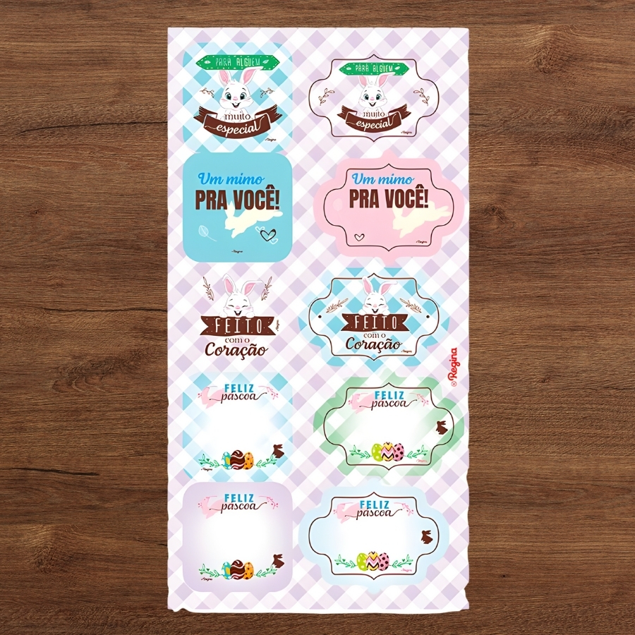 Indicada para uso em caixas, sacolas, embalagens de chocolates e kits temáticos, essa etiqueta decorativa resolve a necessidade de acabamento visual sem exigir processos complexos. É uma solução acessível para quem deseja padronização, identidade temática e um toque especial em produções artesanais ou comerciais de Páscoa.