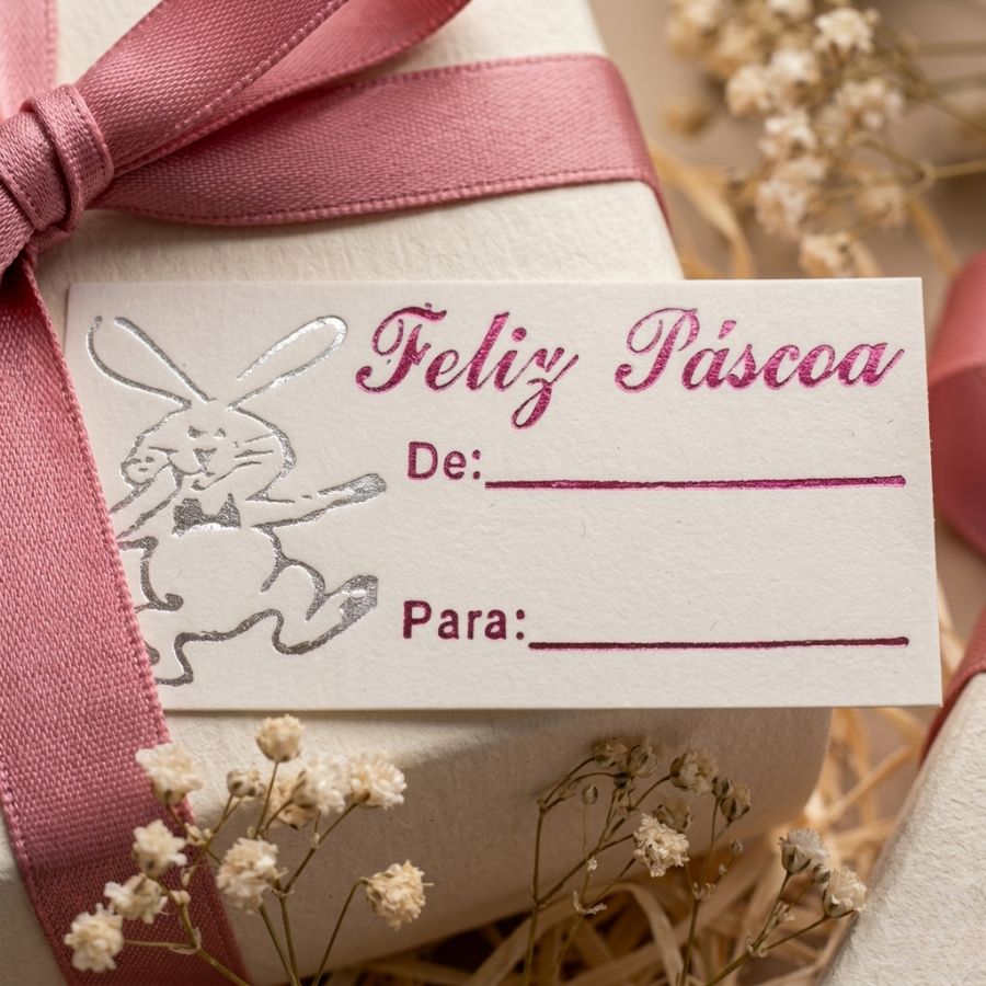 A Etiqueta de Páscoa - De/Para - Coelho Prata e Escrita Rosa - 2cm - 100 unidades é o detalhe perfeito para tornar seus presentes e lembranças de Páscoa ainda mais especiais. Ideal para identificar ovos de chocolate, saquinhos, caixas ou lembrancinhas, essa etiqueta une praticidade e charme em um único item. Com o clássico design de coelhinho prata e a delicada escrita rosa “De/Para”, cada etiqueta transmite cuidado e atenção aos detalhes, adicionando um toque lúdico e elegante às suas embalagens.
