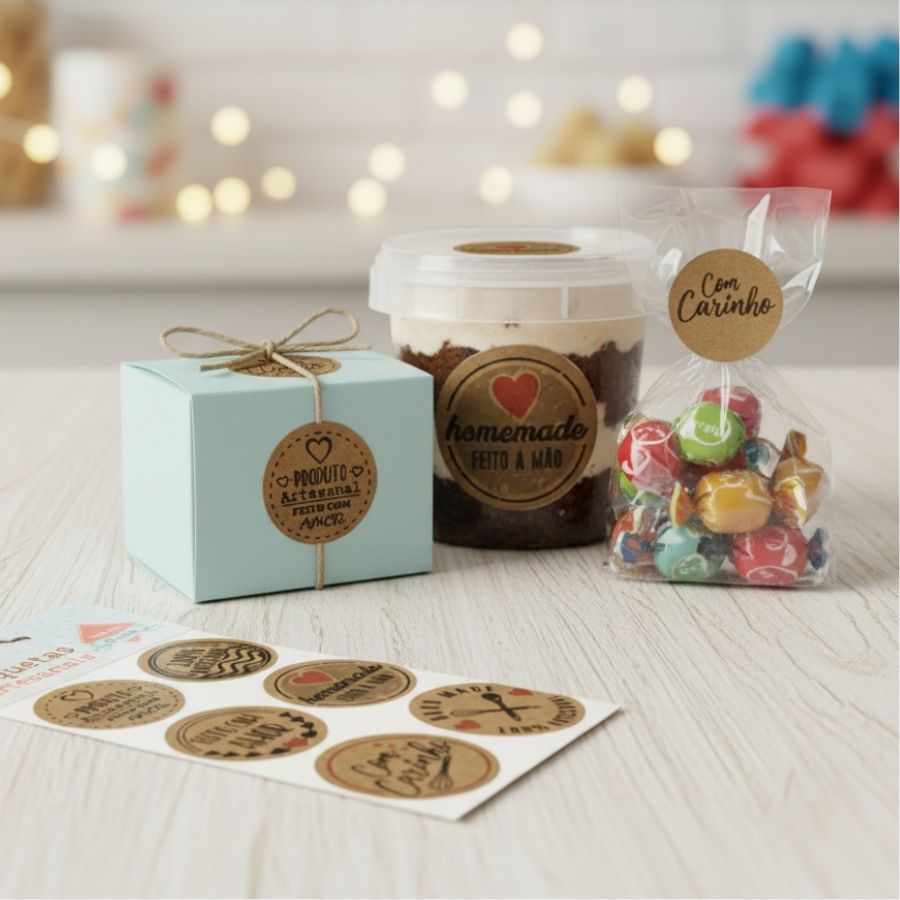 Etiquetas Artesanais Sortida - Kraft - 4cm - 12 unidades - Rizzo Confeitaria