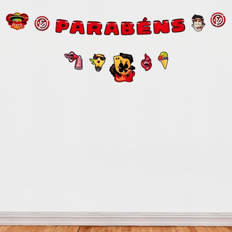 A Faixa Decorativa Temática “Parabéns” Enaldinho 150x10,5cm é produzida em material resistente, com impressão de alta qualidade e cores vivas. É fácil de aplicar e indicada para festas infantis, eventos temáticos e decorações personalizadas inspiradas no Enaldinho.