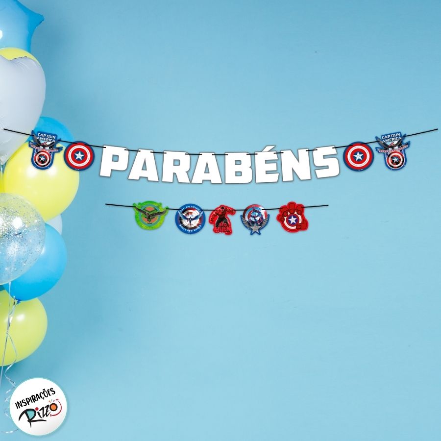 Faixa decorativa Parabens inspirada no Capitão America Marvel