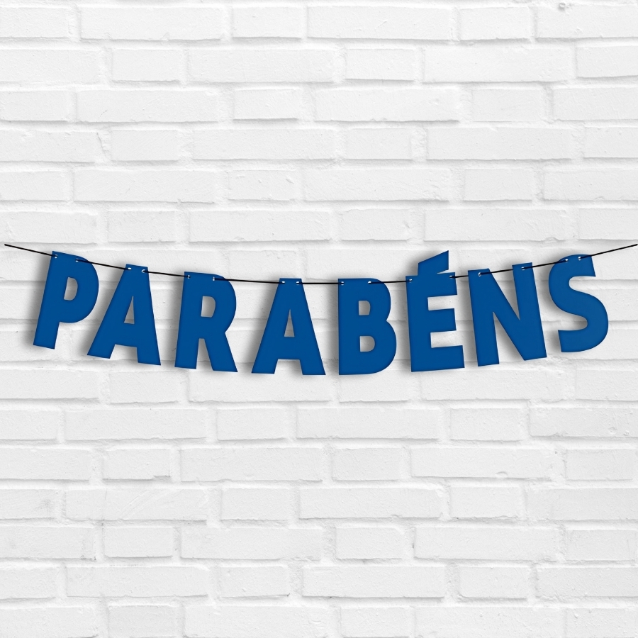 Faixa decorativa “Parabéns” em azul royal, com dimensões de 72x15,5cm. Letras de excelente visibilidade, material durável e fácil fixação. Ideal para diferentes tipos de comemoração.