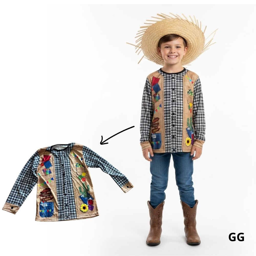 A fantasia infantil de Festa Junina camisa São João traz um visual alegre e tradicional, perfeito para celebrar o clima festivo do São João. Com estampa temática que remete às comemorações juninas, essa camisa é ideal para quadrilhas, apresentações escolares, arraiás e eventos culturais, garantindo um look típico, colorido e cheio de charme.