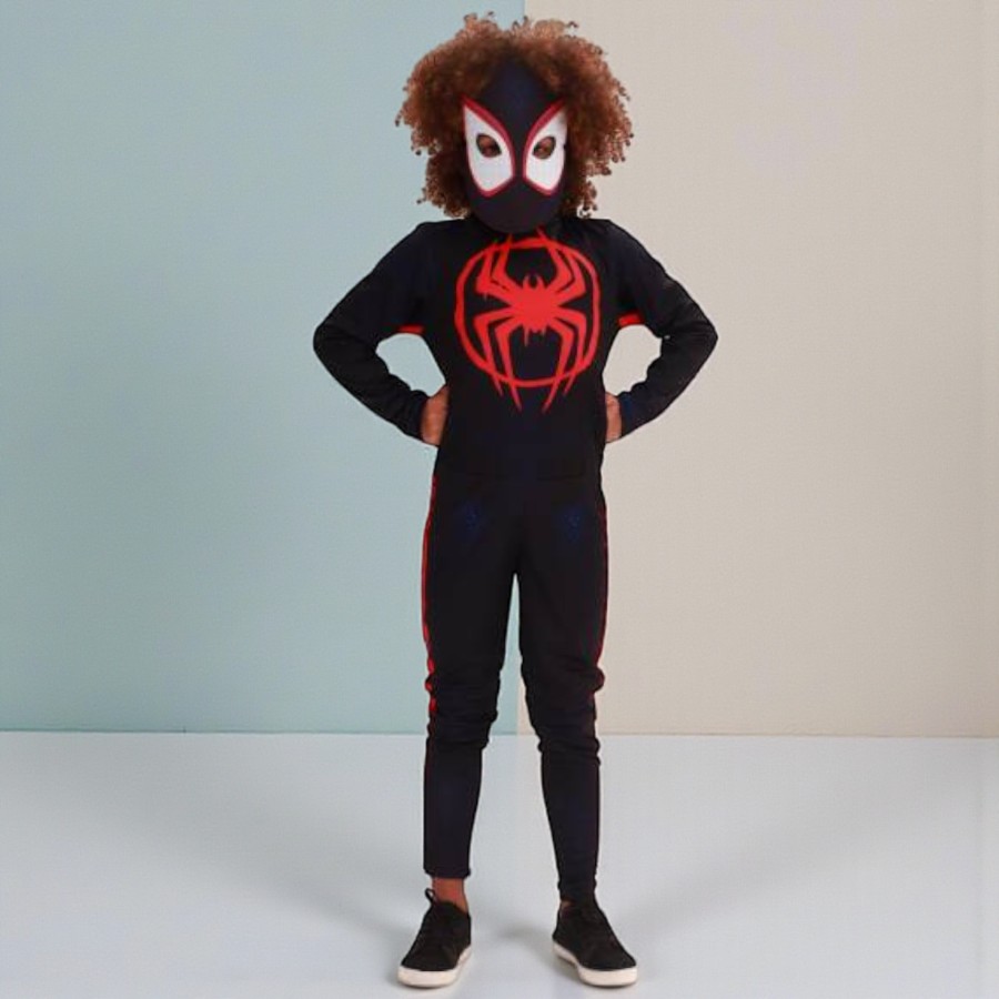 Fantasia infantil inspirada em Miles Morales Marvel, Composta por uma máscara e um macacão modelo longo.