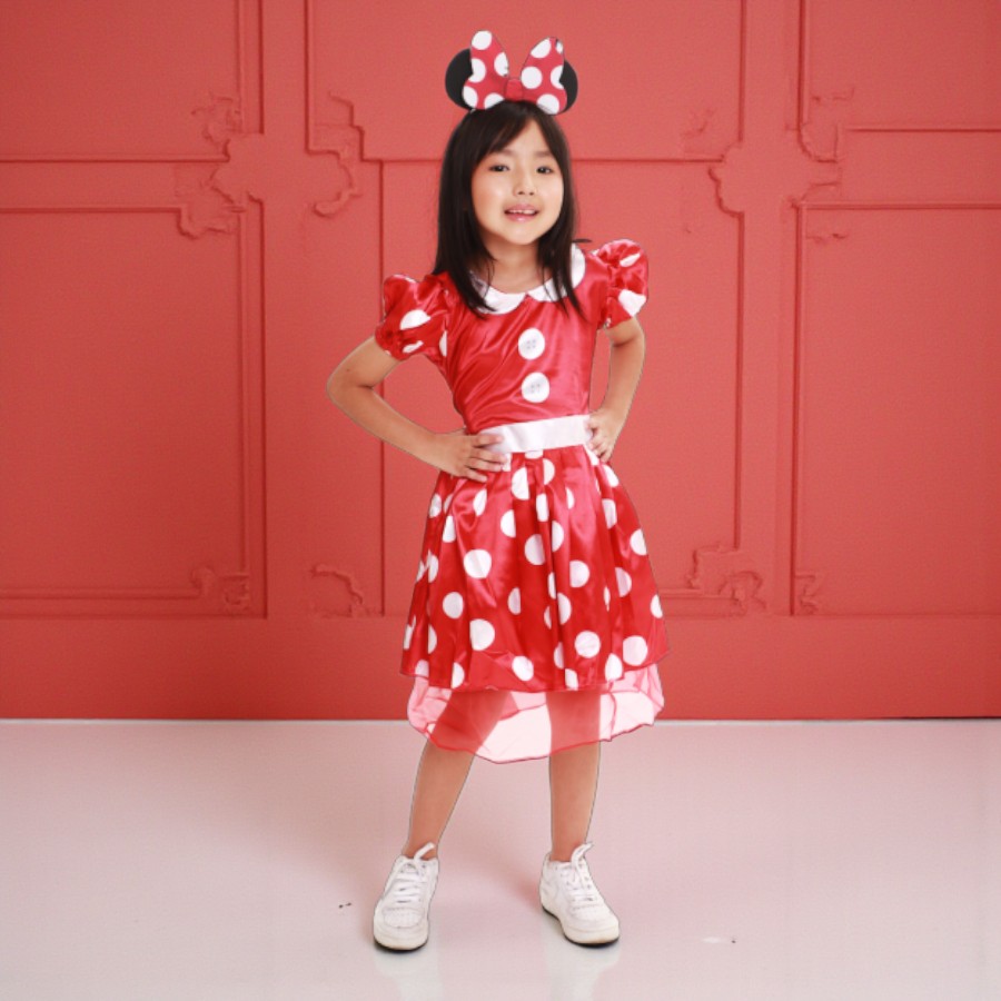 Conjunto de fantasia infantil modelo vestido e tiara inspirado em Minnie Mouse Disney