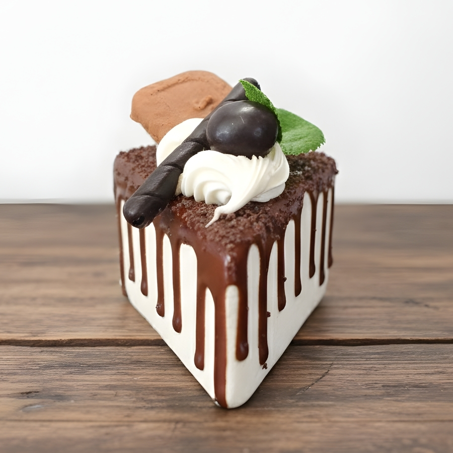 O produto é um enfeite decorativo com imã, em formato de fatia de bolo com chantilly, com tamanho de 10cm. É indicado para uso decorativo em superfícies metálicas, vitrines e composições temáticas.