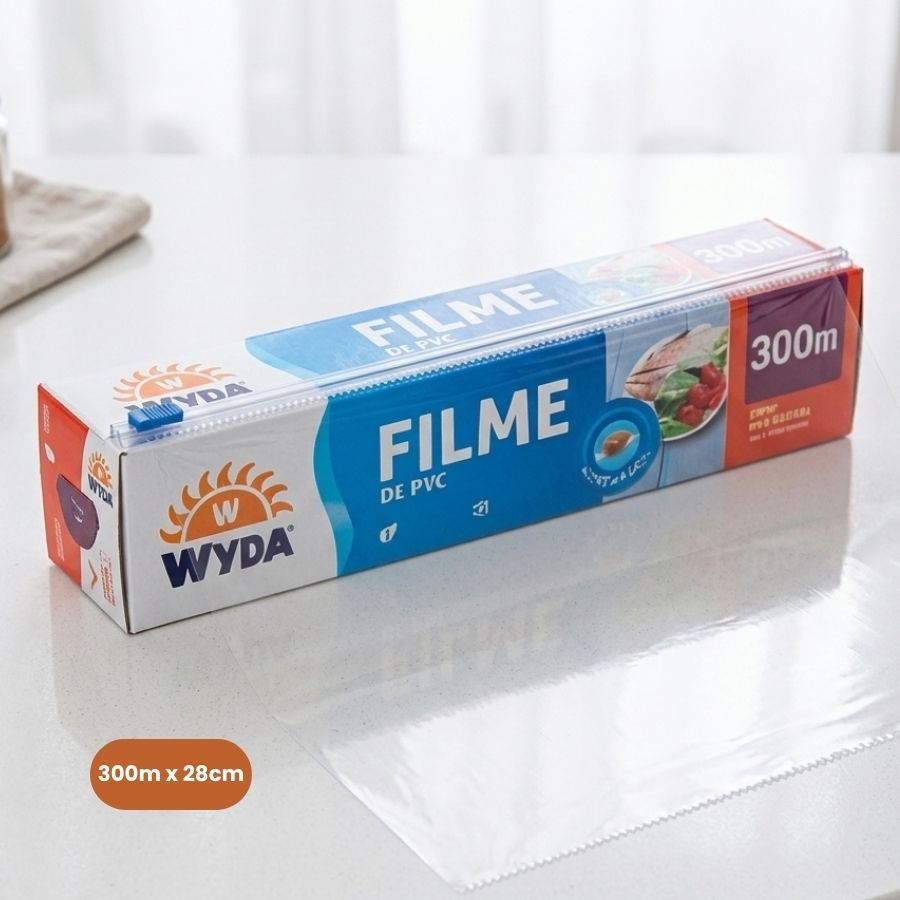 O diferencial do Filme de PVC Wyda com Serrilha e Trilho está na sua fácil aplicação e no sistema de corte com serrilha e trilho, que proporciona cortes precisos e rápidos, evitando desperdício. Perfeito para conservação de frutas, vegetais, carnes, pães e preparações culinárias, mantém os alimentos protegidos do ar e da umidade, aumentando sua durabilidade. Versátil e confiável, agrega valor à rotina de cozinhas domésticas e profissionais, garantindo organização, frescor prolongado e praticidade.