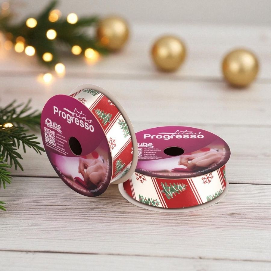 A Fita de Cetim Pinheiro Listrado é a escolha certa para quem deseja tornar presentes e decorações mais alegres e memoráveis nesta época festiva.