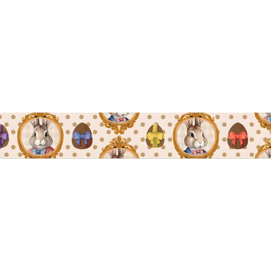 A Fita de Cetim ECF007TR possui largura de 30mm, cor 009 e estampa Retratos de Páscoa Bege. Comercializada em rolo de 10 metros, é indicada para laços, acabamentos decorativos, embalagens, lembrancinhas e aplicações artesanais com temática de Páscoa.