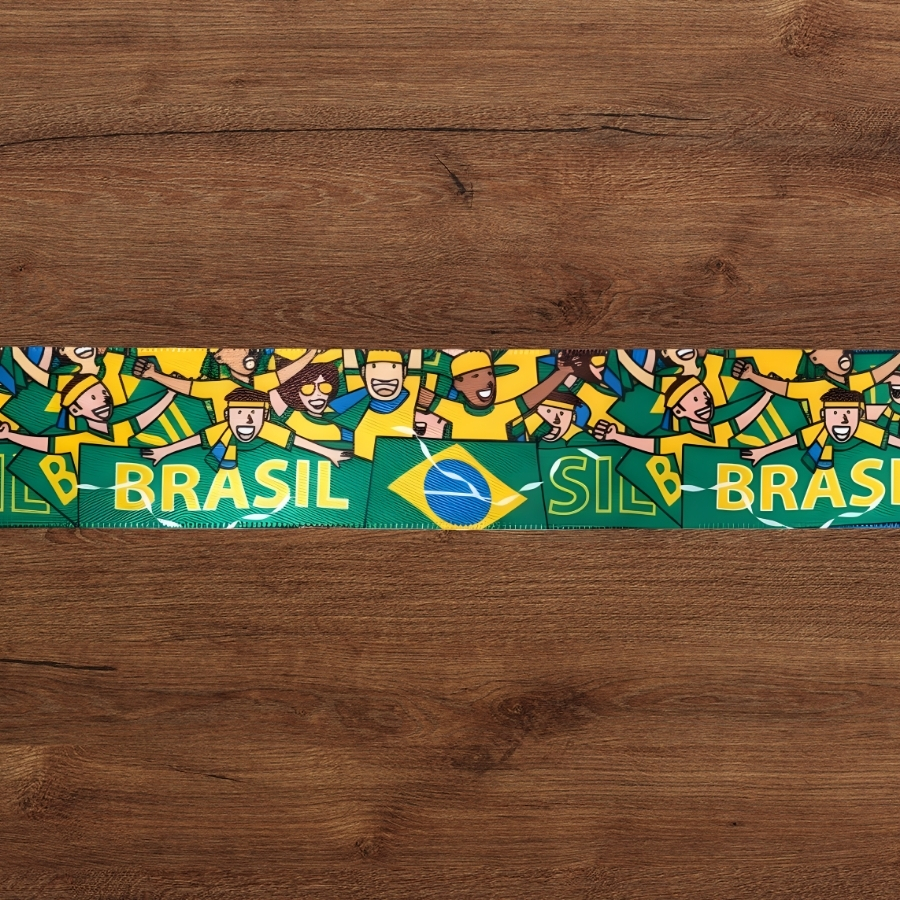 A Fita Decorativa de Cetim - Torcedores Brasil - 10m é utilizada para acabamento de embalagens, presentes e itens decorativos temáticos. Produzida em cetim, possui brilho suave e toque macio, facilitando a confecção de laços e aplicações decorativas.
