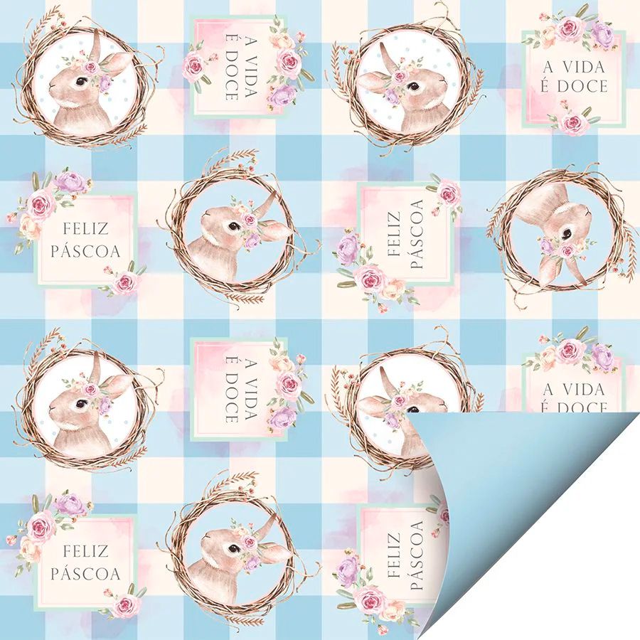 Folha para Ovos de Páscoa Double Face Coelha Serena Azul 69x89cm - 25 unidades - Cromus - Rizzo
