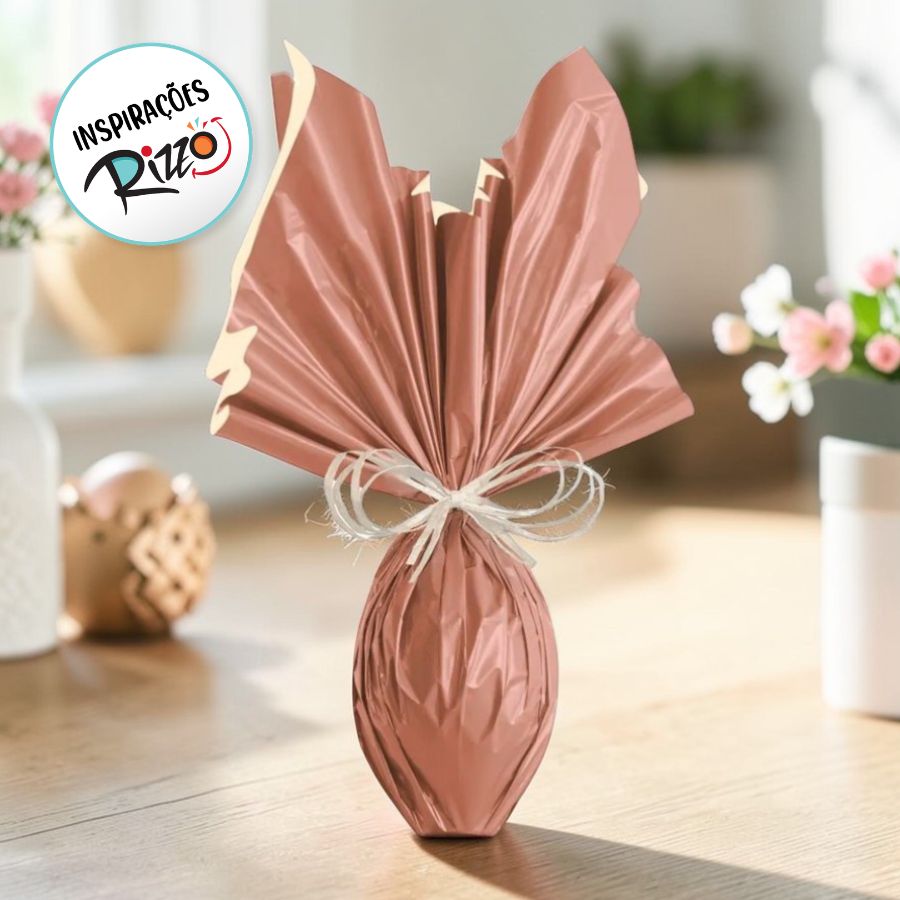 A "Folha para Ovos de Páscoa Double Face" oferece praticidade e estilo na hora de embalar seus ovos de Páscoa. Com dimensões generosas de 69x89cm, esta folha apresenta um lado dourado e outro rosa, permitindo que você escolha entre duas opções de cor para suas embalagens.