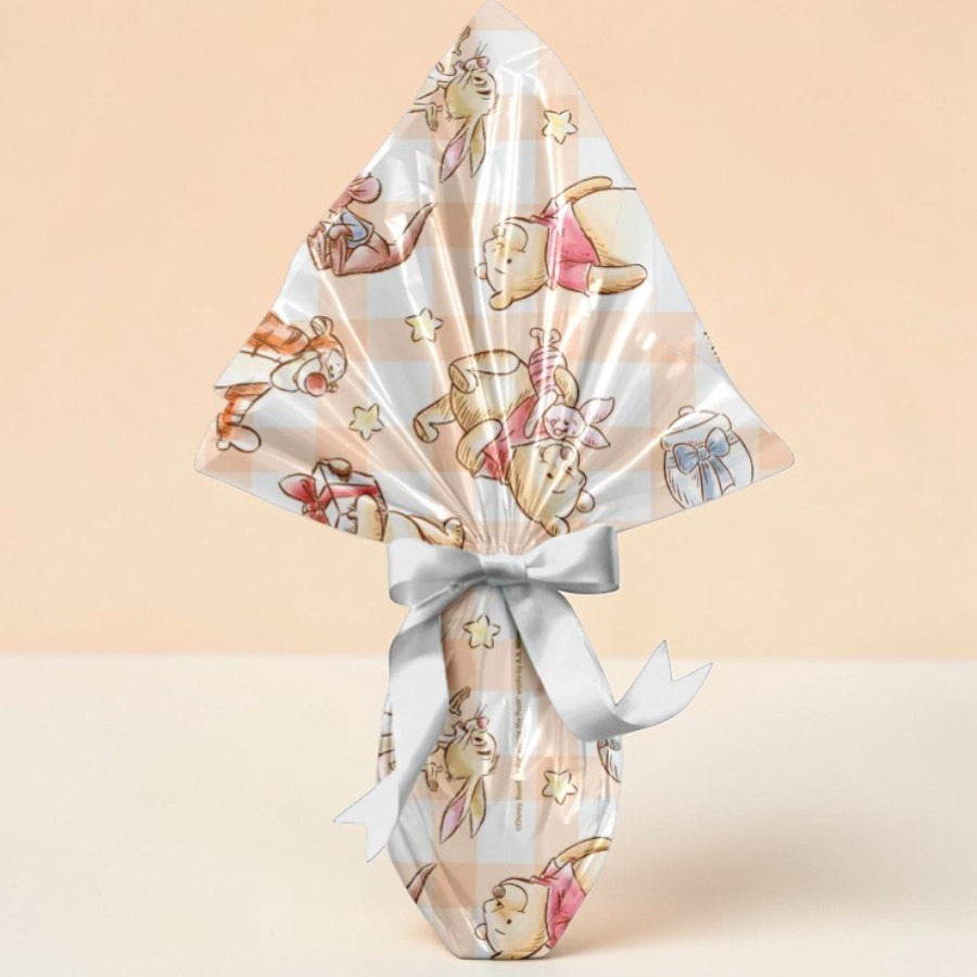 A Folha para Ovos de Páscoa inspirada no Ursinho Pooh Disney é perfeita para transformar a apresentação de chocolates em um momento encantador e cheio de delicadeza. Com estampa temática que remete ao universo lúdico do personagem, este item se destaca pelo visual alegre e acolhedor, ideal para composições de Páscoa infantil. Seu tamanho de 69x89cm proporciona excelente cobertura para embalar ovos de diferentes tamanhos com praticidade, valorizando a estética do produto final. O design decorado em um lado, combinado ao verso liso prateado, permite criar contrastes visuais elegantes e criativos, agregando charme à embalagem e tornando cada detalhe ainda mais especial em vitrines, presentes ou produções artesanais.