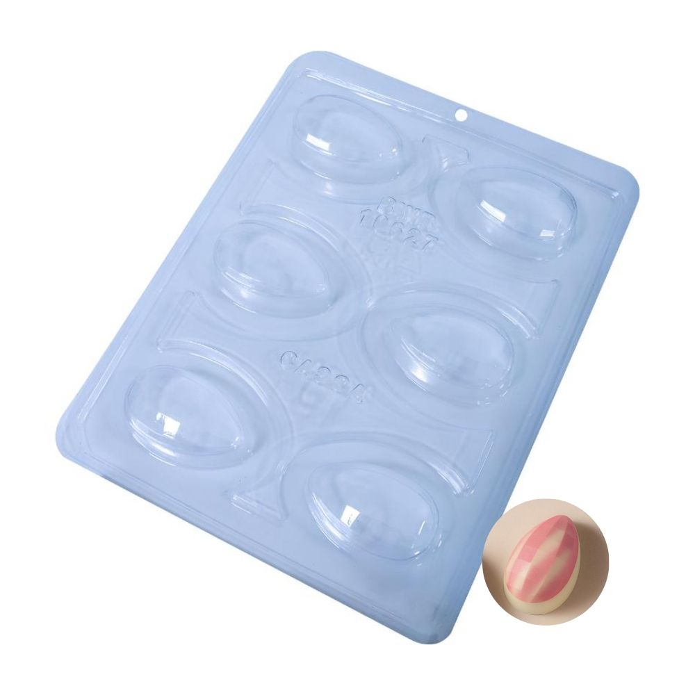 A forma de acetato especial é ideal para a produção de bombons em formato de ovo com acabamento sofisticado e alto nível de padronização. O modelo Bombom Ovo Mosaico apresenta um padrão mosaico ricamente trabalhado, que se destaca no chocolate e valoriza o visual do produto final. Conta com 6 cavidades, sendo perfeita para produções artesanais e profissionais com excelente apresentação.
