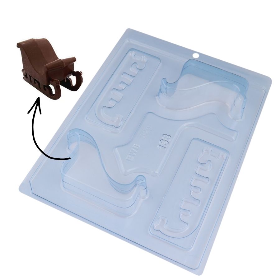 Forma especial para Trenó é ideal para criar chocolates temáticos com acabamento profissional e detalhes precisos. Perfeita para confeiteiros, chocolatiers e amantes da confeitaria, essa forma de chocolate natalina permite produzir trenós de chocolate encantadores para presentes de Natal, lembrancinhas natalinas e decoração de mesas festivas