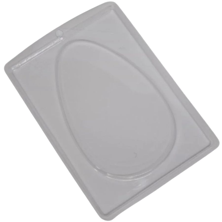 Forma Simples de acetato com cavidade para molde de um ovo plano em tamanho grande. Seu design clássico, com acabamento liso e uniforme, é perfeito para decorações, aplicação de transfer, pintura com manteiga de cacau ou personalização com confeitos. Ideal para quem busca versatilidade na produção de ovos de Páscoa criativos e modernos.