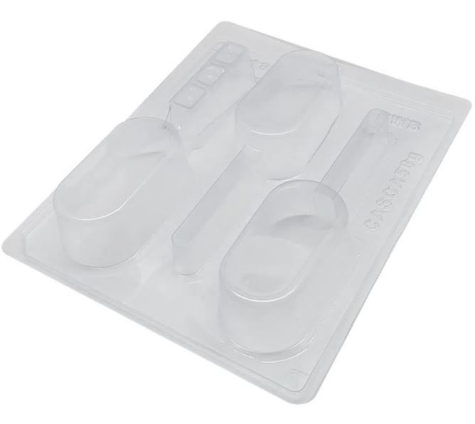 Forma especial com silicone (3 partes), ideal para produção de chocolates com muito mais praticidade e precisão.