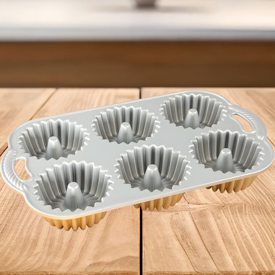 A Forma Para 6 Mini Bolos – Brilliance – 1,2L possui cavidades com formato decorativo que valorizam o visual final das receitas. Desenvolvida para assar mini bolos com facilidade e precisão, proporciona desmolde eficiente e acabamento definido, sendo ideal para uso doméstico ou profissional.