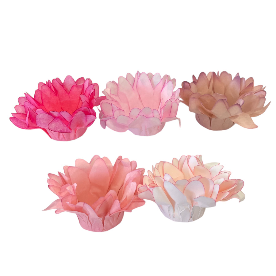 Forminha para doces finos em formato de flor, com 4 tons de rosa
