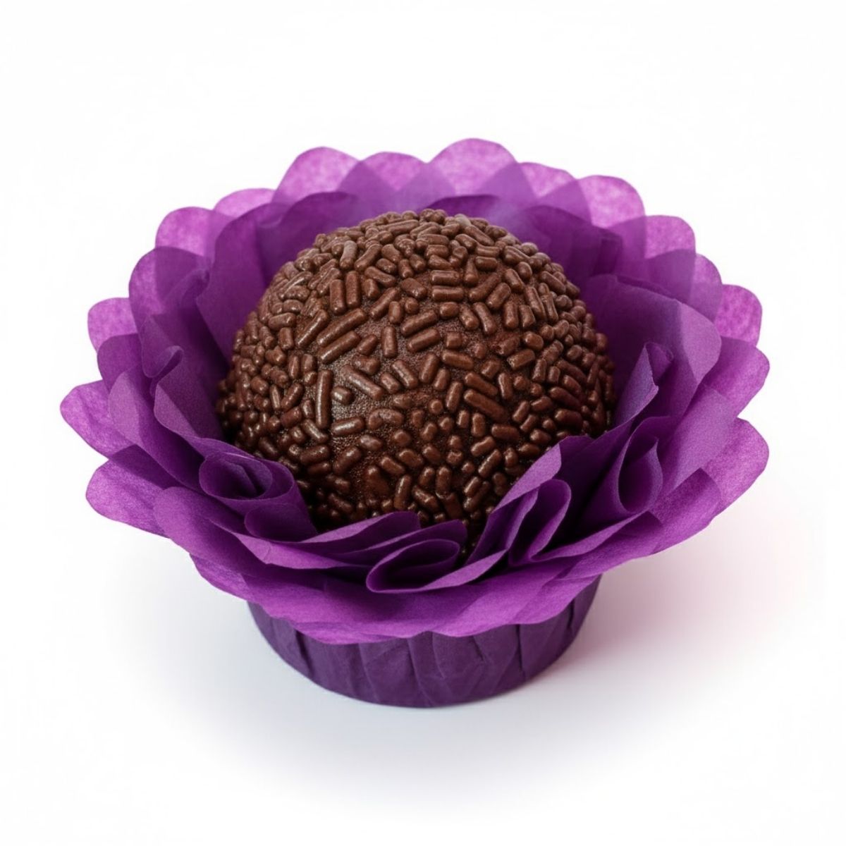 Abra a forminha com cuidado e acomode o doce no centro, ajustando conforme o tamanho. Indicada para doces finos, brigadeiros gourmet, trufas e bombons. Armazene em local seco para manter a estrutura e a cor.