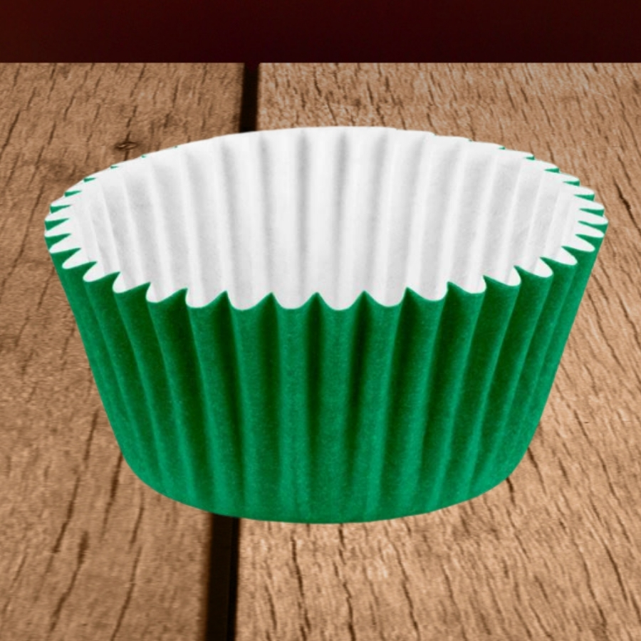 A forminha para doces nº 04 possui cor verde escuro e dimensões aproximadas de 2,5x2cm. É indicada para acomodar pequenos doces, auxiliando na organização, padronização e valorização estética das produções de confeitaria.