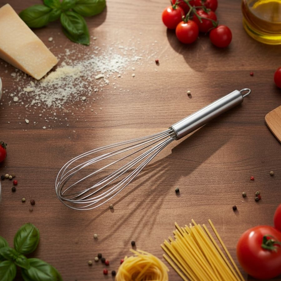 O design com arames flexíveis proporciona misturas homogêneas e rápidas, garantindo resultados consistentes com menos esforço. O metal de alta qualidade confere resistência à deformação, suporte a altas temperaturas e longa durabilidade, sendo perfeito para chefs, confeiteiros e entusiastas da culinária que valorizam utensílios funcionais, versáteis e confiáveis.