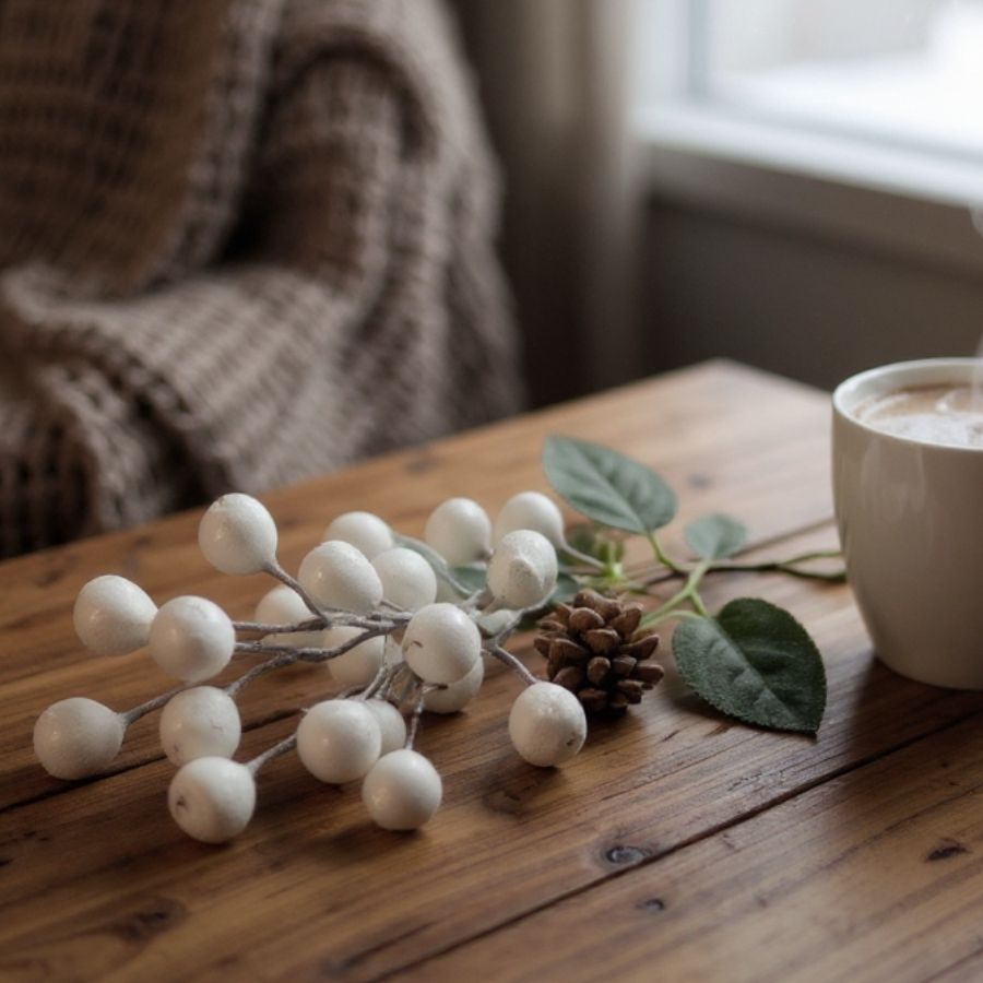 O Galho Decorativo de Natal Berry Branco é compacto, delicado e versátil, ideal para compor decorações natalinas elegantes e harmoniosas.