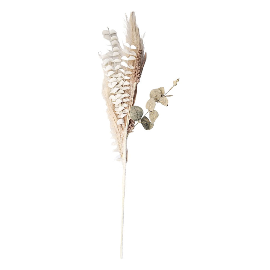 galho decorativo com folhas e flores verde e creme