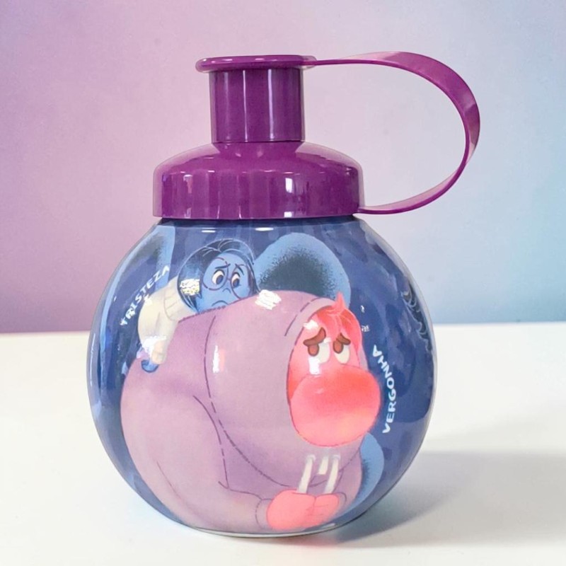 Se você procura uma garrafinha divertida, funcional e cheia de personalidade para o dia a dia infantil, a Garrafa Squeeze Bola inspirada em Divertidamente Disney é uma ótima opção para unir praticidade e um visual encantador. Com capacidade de 250ml, ela é ideal para quem busca uma garrafinha infantil compacta, perfeita para água, sucos e outras bebidas leves, além de ter um formato pensado para pequenas mãozinhas segurarem com facilidade. Nas cores roxa e azul, o design ganha destaque com a presença da Tristeza Disney e da Vergonha Disney, personagens de Divertidamente 2 que deixam o uso mais divertido e criativo.