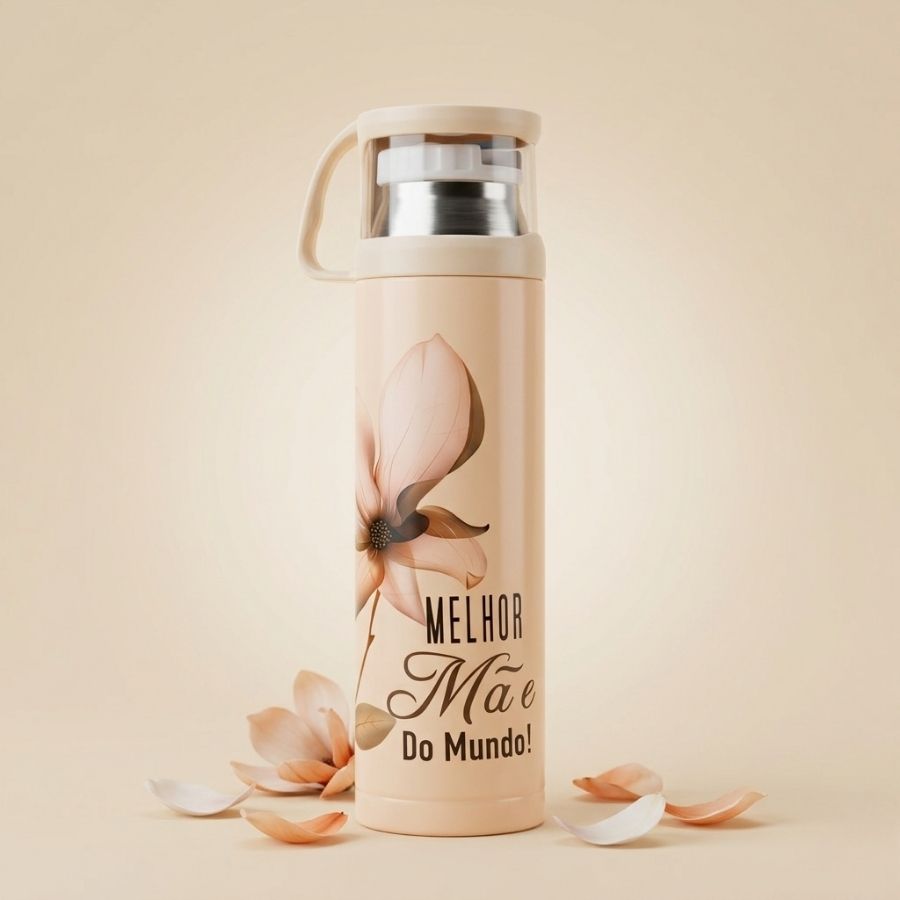 A Garrafa Térmica Decorada - Bege - Melhor Mãe do Mundo - 470ml é o presente perfeito para expressar todo o carinho e reconhecimento à sua mãe. Com capacidade de 470ml, mantém bebidas quentes ou frias por mais tempo, ideal para o dia a dia, trabalho, passeios ou momentos de descanso. Seu design sofisticado na cor bege e a frase “Melhor Mãe do Mundo” tornam esta garrafa um item que combina utilidade, estilo e emoção em um só presente.