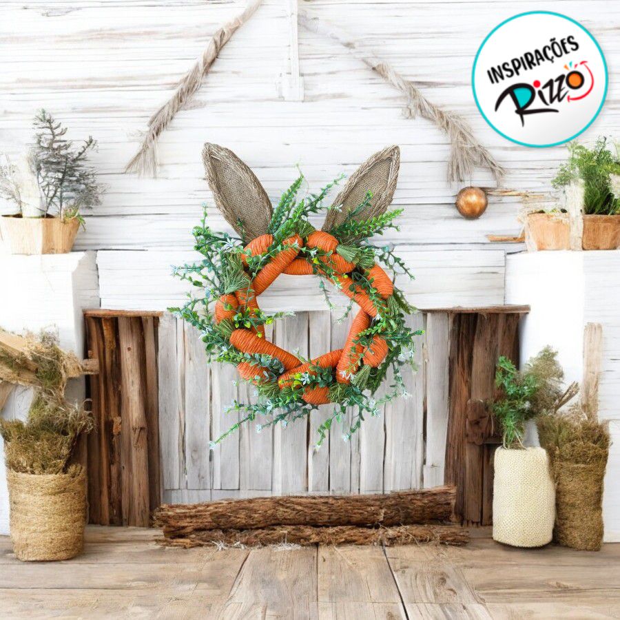 Guirlanda de Páscoa com cenoura, 38cm de diâmetro. Um item decorativo encantador para celebrar a Páscoa com estilo.