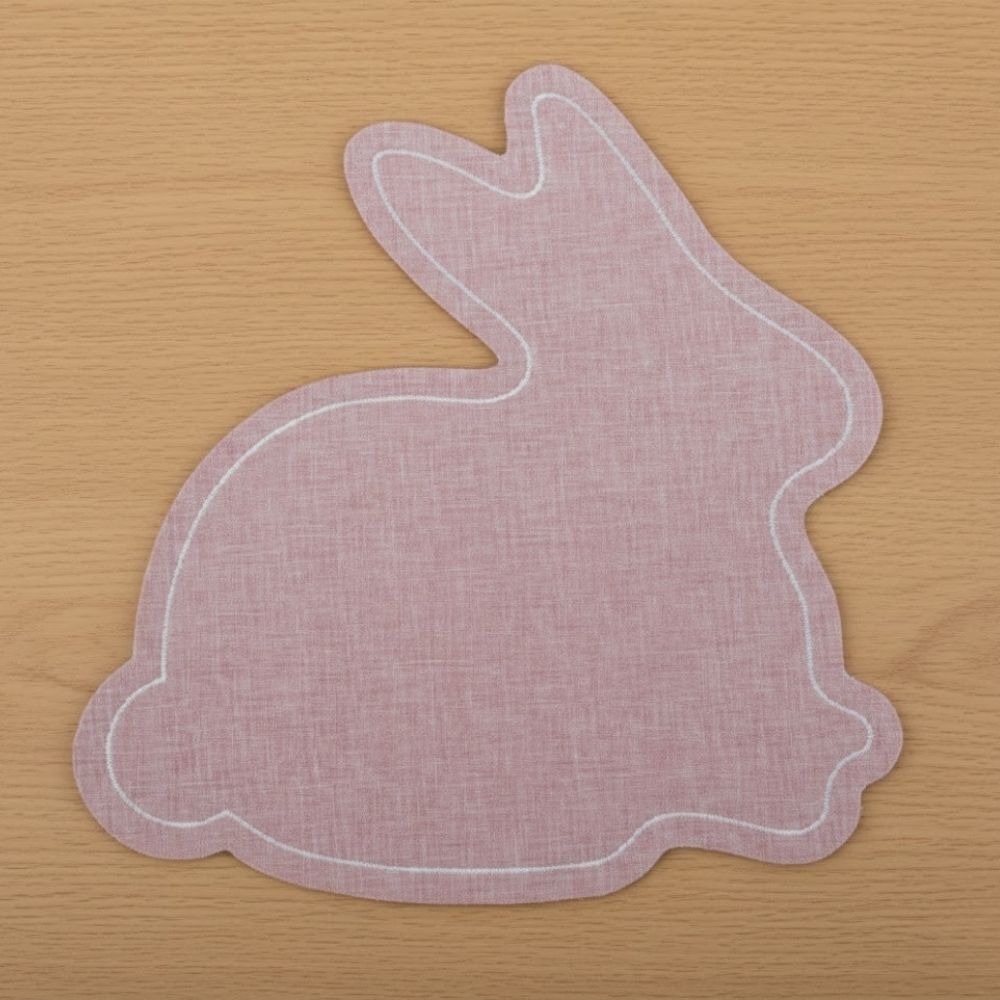 O Jogo Americano em formato de coelho é uma peça encantadora e delicada, perfeita para mesas temáticas de Páscoa. Na cor rosa pastel, traz um visual suave, romântico e acolhedor, enquanto a borda branca adiciona um acabamento elegante que valoriza ainda mais o design da peça.