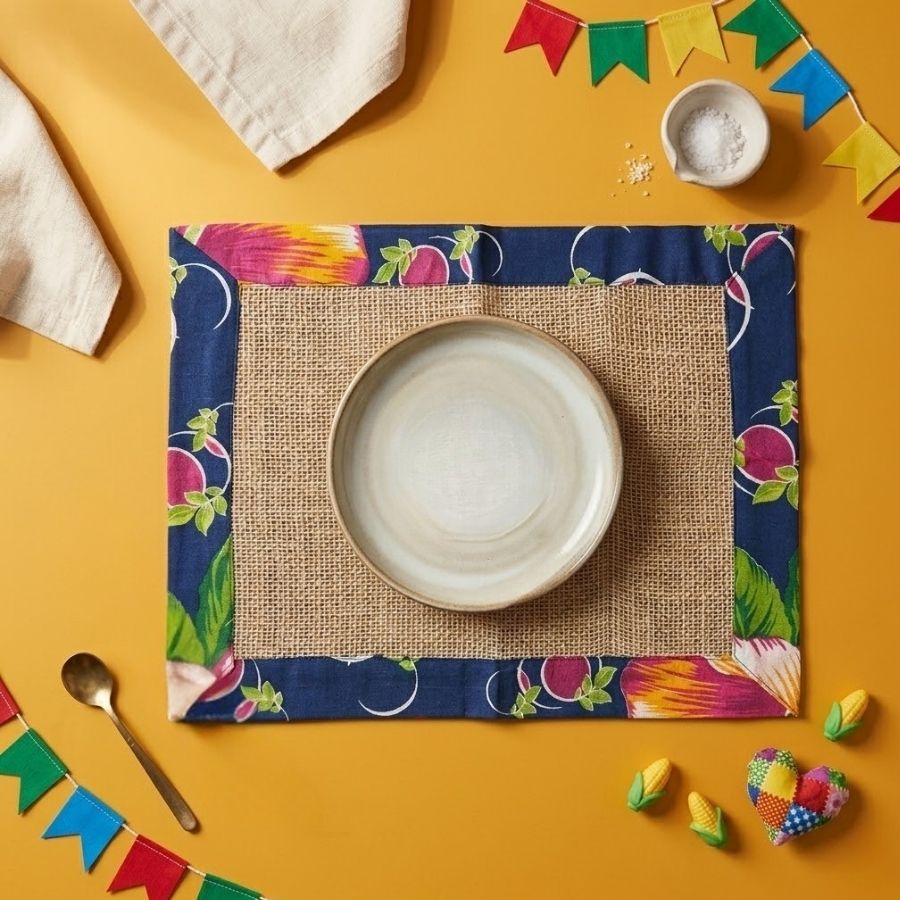 Perfeito para diversas ocasiões, o jogo americano decorativo pode ser utilizado em mesas de arraial, festas temáticas, aniversários, eventos escolares e até mesmo no dia a dia para quem ama um estilo mais colorido. Combine com itens como pratos típicos, doces juninos (como paçoca, canjica e pé de moleque), copos decorados e toalhas de mesa para criar uma composição encantadora. Também é uma ótima opção para montar mesas de comidas típicas, organizar espaços de servir ou destacar cada lugar à mesa com muito estilo. Se você busca uma forma prática e econômica de transformar sua decoração, o jogo americano para festa em chita é a solução ideal. Ele une beleza, funcionalidade e tradição, sendo indispensável para quem quer criar um ambiente temático marcante e acolhedor.