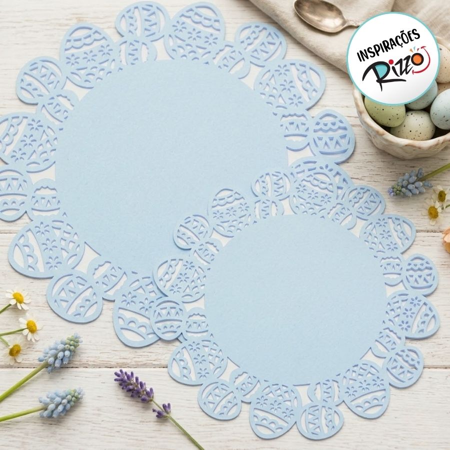 Jogo Americano Redondo de Feltro Borda Ovos Azul - 01 unidade - Cromus Páscoa Rizzo Embalagens