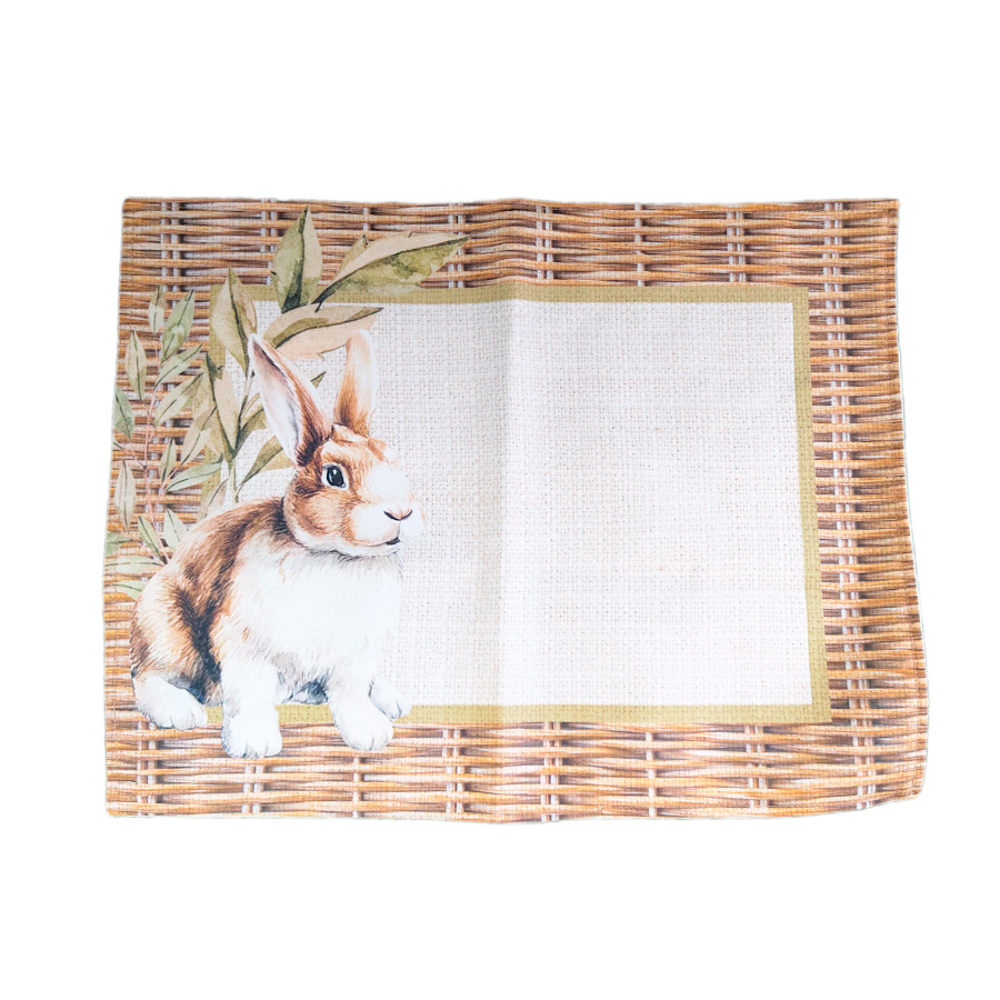 Adicione um toque encantador à sua mesa com o Jogo Americano Retangular Coelho Palha! Seu design rústico e o adorável coelho em destaque trazem a atmosfera acolhedora da fazenda para suas refeições.