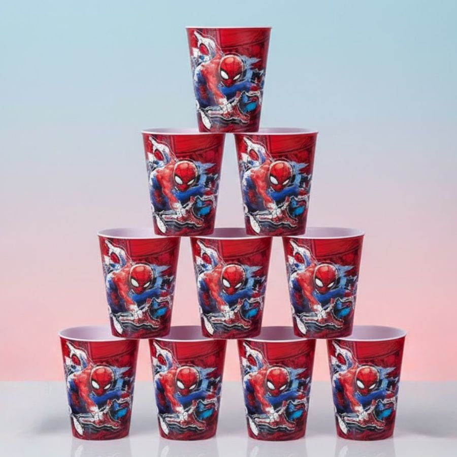 O Kit com 10 Copos para Lembrancinha inspirado em Homem Aranha Disney, com capacidade de 320ml, é ideal para festas infantis com tema de super-heróis. Os copos são práticos para servir bebidas durante a comemoração e também para uso no dia a dia, auxiliando na hidratação das crianças. Uma ótima escolha para festa heróis, festa Homem Aranha, festa Spider Man, aniversário menino e montagem de sacola surpresa. Sonhar, realizar e comemorar fica ainda mais simples com itens funcionais disponíveis na Loja Disney