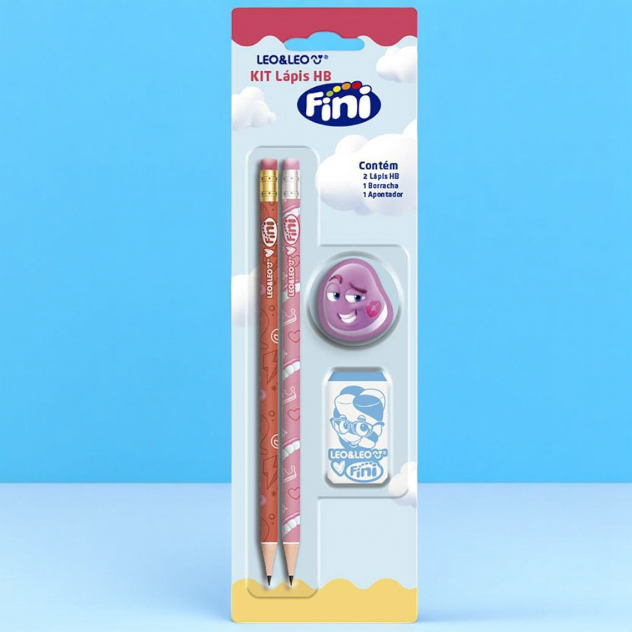 Kit com 2 lapis HB, um apontador e 1 borracha temáticos de fini