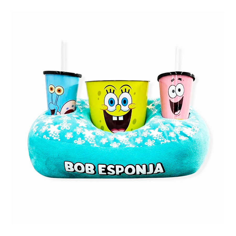 Transforme suas sessões de cinema em casa com o Kit Almofada Pipoca - Bob Esponja! Com um design divertido do Bob Esponja, ele inclui espaço para pipoca e bebidas, garantindo conforto e praticidade.