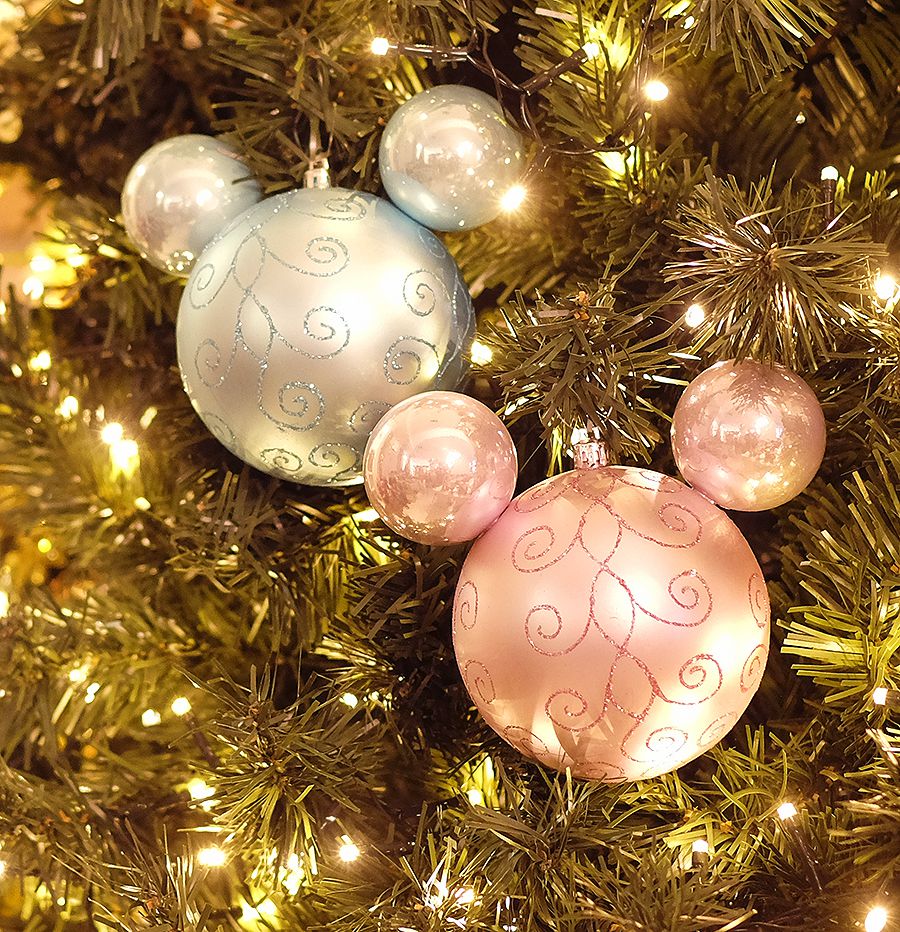 Kit Bolas Rosa e Azul Arabesco 10cm - 02 unidades Natal Disney - Cromus - Rizzo Embalagens