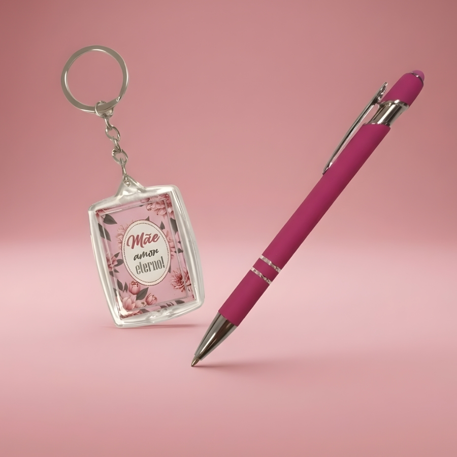 O Kit Caneta e Chaveiro Rosa “Mãe Amor Eterno” é a escolha ideal para transformar itens do dia a dia em uma homenagem cheia de significado. Com uma mensagem que expressa carinho de forma marcante, ele valoriza cada detalhe e torna o gesto ainda mais especial.
